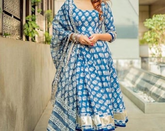 Blue Anarkali Suit With Embroidered Dupatta With Gota Etsy